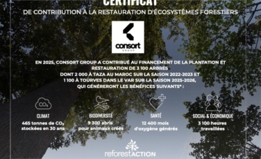 Retrouver les détails de notre politique RSE dans notre document de référence « Grandir durablement Consort Group » et au travers de la Déclaration de Performance Extra financière de Consort NT.